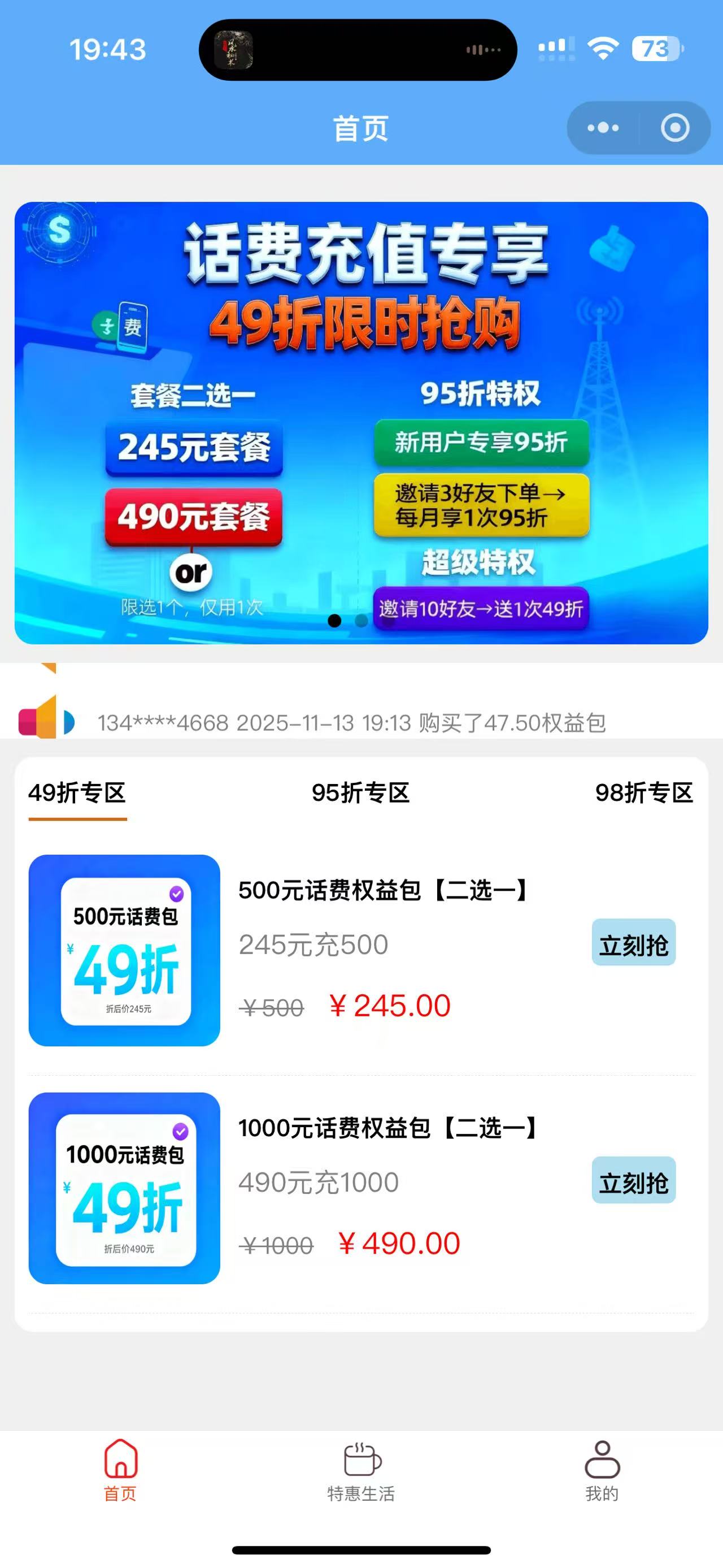 想找靠谱赚钱项目?“话惠省”等你来!三大运营商话费都能充,全国通用、无时间/地区限制,最高享5折优惠,还有本地生活消费类目,用户只要在平台消费,你就能赚收益!